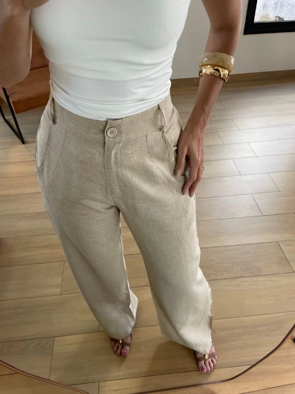Adicione elegância ao seu dia a dia com a Calça Linho Misto Forrada Elástico Bolsos Chique!