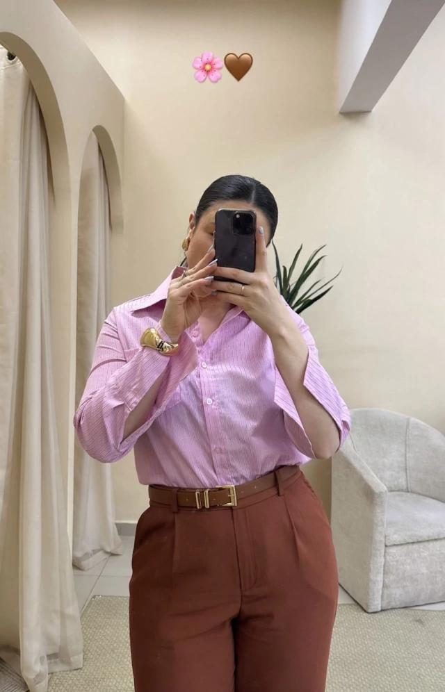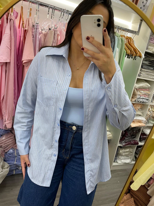 Camisa tricoline poliéster não amassa listrada vertical