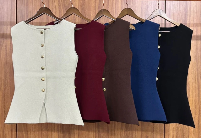 Atualize seu guarda-roupa com o Colete Modal Regata Botões Dourados Alongado e sinta-se confortável e estilosa em qualquer ocasião!
