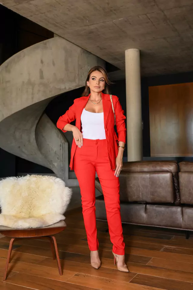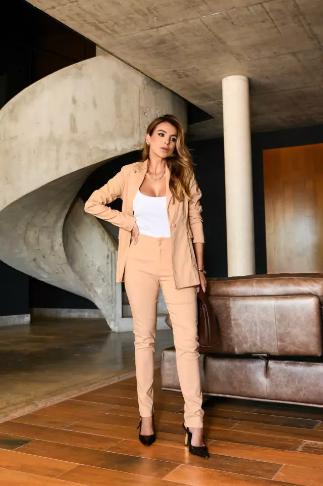Conjunto linho rústico chique blazer ombreira calça skinny