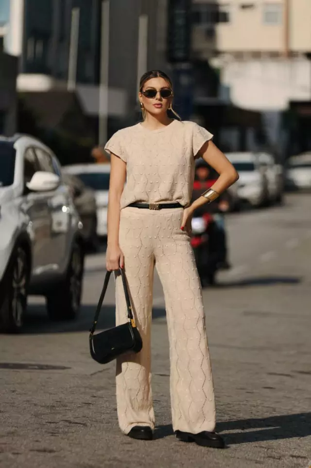 Conjunto tricot tee calça wide pipoca zigzag vertical