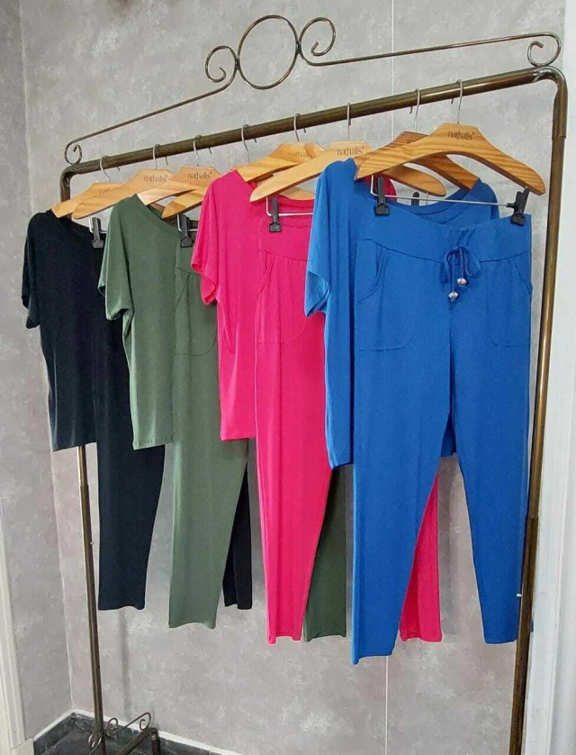 Conjunto viscolycra básico blusa decote canoa ponteira