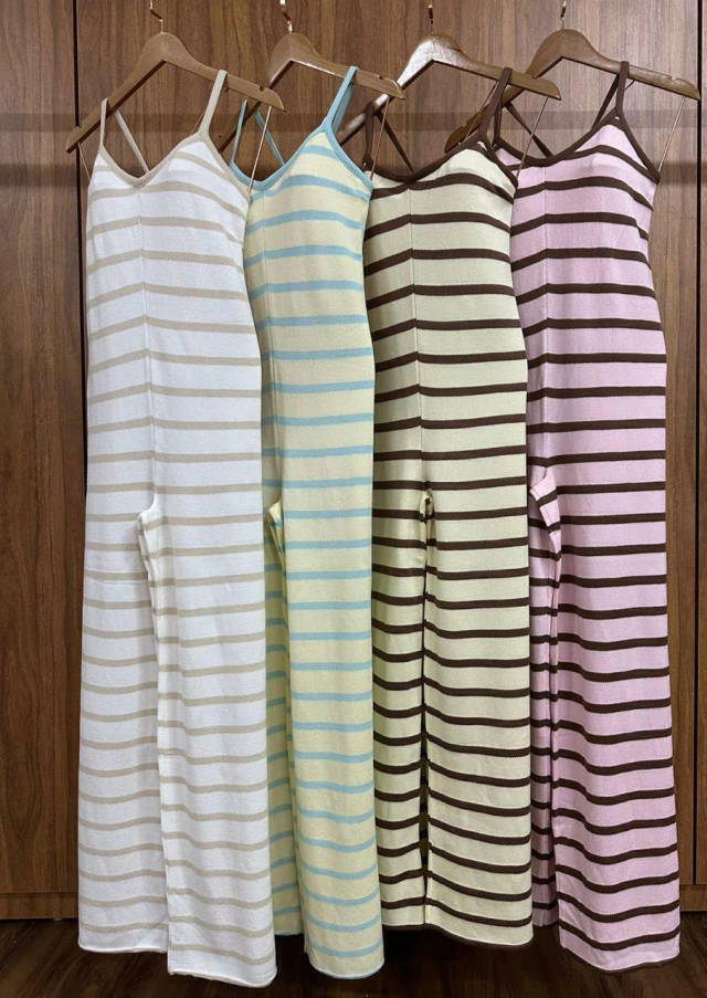 Descubra o charme e a elegância do Macacão Alças Listrado Fino Wide, a peça perfeita para quem busca um visual moderno e confortável para o dia a dia ou ocasiões especiais.
