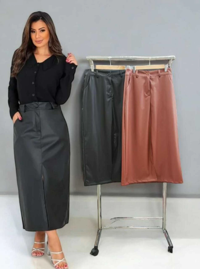 A Saia Couro Eco Midi Básica é a peça essencial que não pode faltar no seu guarda-roupa. Confeccionada em material ecológico, esta saia une sustentabilidade e estilo, garantindo um visual moderno e sofisticado para qualquer ocasião.